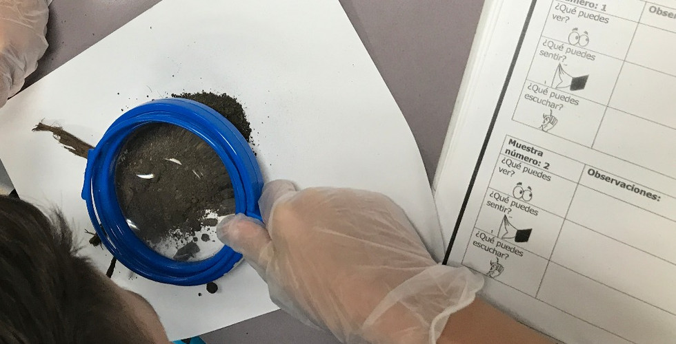 Students in Year 4 observed different types of soil at school and wrote down the properties they could see in each of them. While doing so, they learnt some adjectives and review the colours in Spanish.